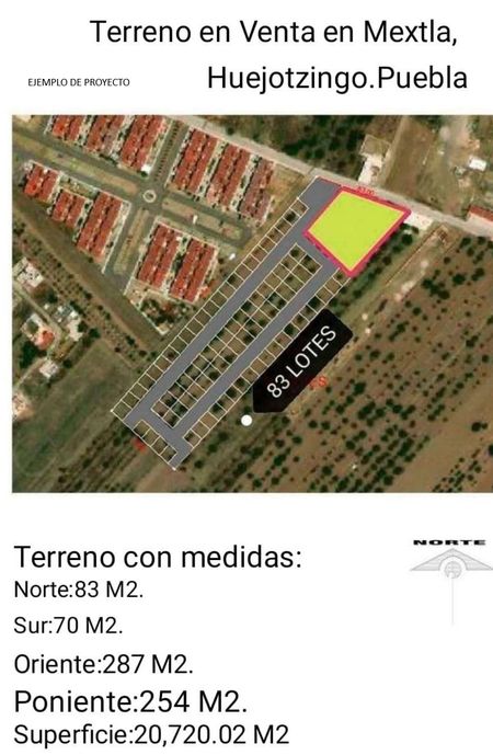 Se vende excelente terreno de 20,720 m2;, ideal para desarrolladores, ubicado a tan solo 3 km del Aeropuerto Internacional de Puebla. El predio cuenta con 83 metros de frente hacia el norte, 70 metros hacia el sur, 287 metros al oriente y 254.70 metros al poniente, con un uso de suelo habitacional H3, permitiendo la construcción de hasta 90 viviendas por hectárea. El terreno dispone de todos los servicios a pie de banqueta, lo que facilita su urbanización. Está rodeado de conjuntos habitacionales, lo que lo convierte en una excelente opción para el desarrollo de casas o departamentos de nivel medio. Su ubicación estratégica, a minutos del aeropuerto y en una zona en constante crecimiento, lo hace una inversión ideal para proyectos inmobiliarios. ¡No dejes pasar esta oportunidad! RTV619741