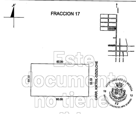 Terreno en venta ubicado en Komchén, de 33.33x60 con una superficie total de 1,999. m2.Precio de venta: $900.00 M.N. por m2.Tablaje # 34112