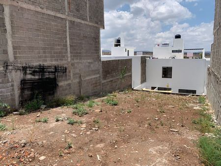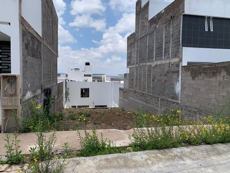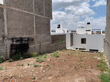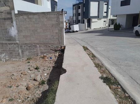 Terreno en venta en Fraccionamiento Fuerteventura entre las calles de Cotillo y Conil, cuenta con pendiente negativa.