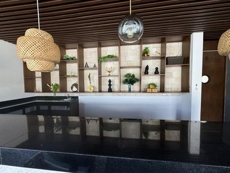 sillas confidentes, mesas de convivencia y cárcamo de agua.