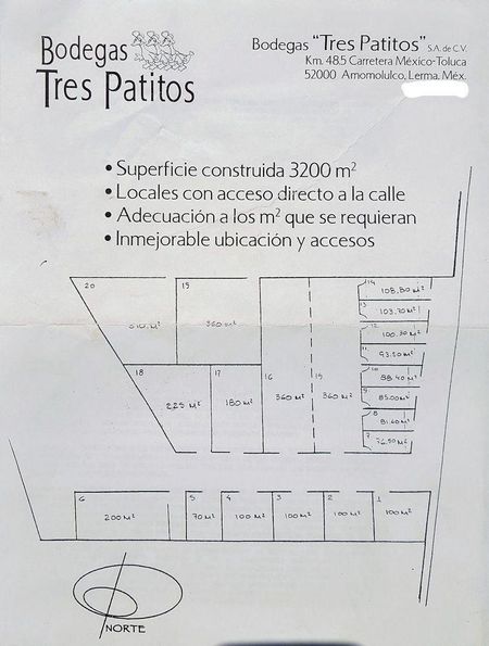 Ideal para uso comercial/industrial. Superficie aproximada de 9,000m2 y 3,200m2 construidos de bodegas. Todos los servicios disponibles (agua, drenaje y luz). Cuenta con todos los papeles y al corriente de todos los pagos. Precio: $ 5,355 x m2