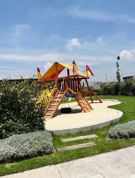 Canchas de Padel, palapa, áreas verdes, juegos infantiles, alberca, centro comercial .