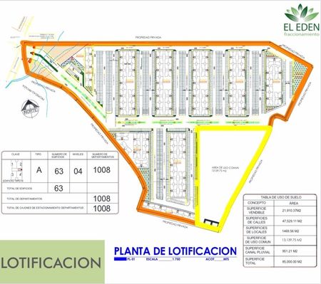Se vende terreno de 8.5 HAS (85,000 m2) ideal para desarrollo inmobiliario para vivienda tradicional o media, cuenta con proyecto para desarrollar 1,008 departamentos en condominio y 7 zonas comerciales.