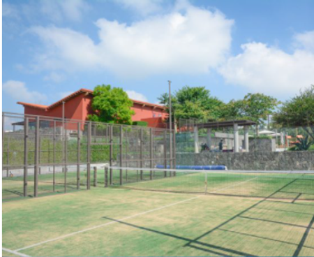 Alberca descubierta semi olímpica, snack bar, cancha de fútbol soccer, pádel, canchas de tenis, ruta ciclista, salón de juegos, ludoteca, cuarto de adolecentes y modernos vestidores.