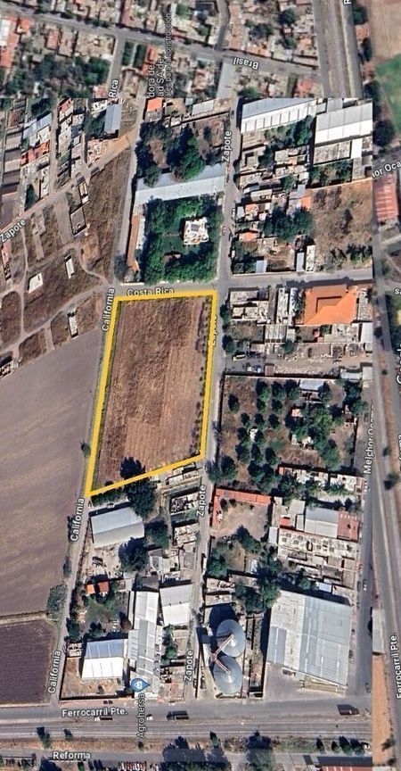 Terreno ideal para industria, con poco más de una hectárea.Casi un rectángulo tiene 3 frentes por las calles Costa Rica, Zapote y California. 10,539 mts2