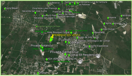 Hermoso terreno en el bien cotizado y colindante municipio de Conkal, al norte de la ciudad de Mérida, excelente para desarrollar una finca personal con miras a que en un futuro no lejano pueda convertirse en un interesante lugar