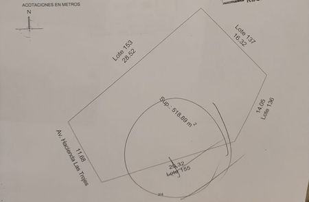 Este terreno es de 518.89 metros cuadrados, ideal para construir una casa de una planta y tener un hermoso jardín. Se localiza en Avenida principal en Hacienda de las Trojes en Corregidora, Querétaro. Cuenta con un frente de 11.68m2 y un fondo de 28.52m2. Es un polígono irregular y es más ancho en su parte media.