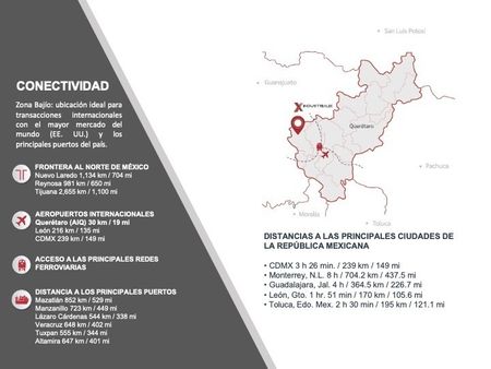 Accesibilidad a través de las vialidades primarias hacia los principales parques industriales del Bajío, así como al resto del país