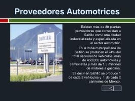 Conforma una de las mayores agrupaciones automotrices de México desde 1970 algunas de estas empresas son Grupo Industrial Saltillo, Chrysler, DeAcero, General Motors, Fiat Group, Bosch, Brenntag, Brown Corporation de Saltillo, Huntington espumas, Indiana tubo de México, SA de CV. Linamar de México, Mubea, Nacco, Química y Farmacia, Fuel System, Meridiano de Automoción, Parkway Productos de México.