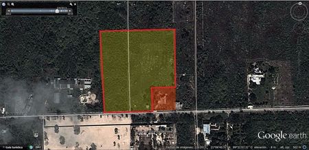 Terreno a orilla de carretera de Kantoyna en la entrada a la Hacienda de Kantoyna, cuenta con 135 metros de frente por mas de 150 metros de fondo, ideal para desarrollar.