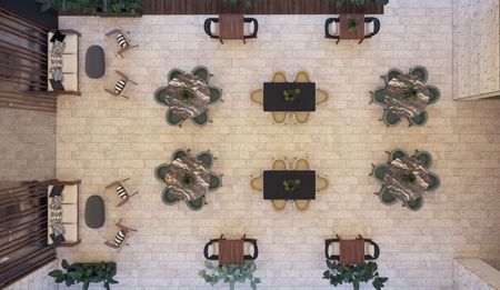 ~Terraza techada de usos múltiples con capacidad para 50 personas, con mobiliario, barra de servicio y baños para invitados.