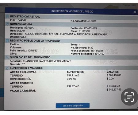 • Tablaje número 6,952 de la localidad de Komchen, Mérida, Yucatán