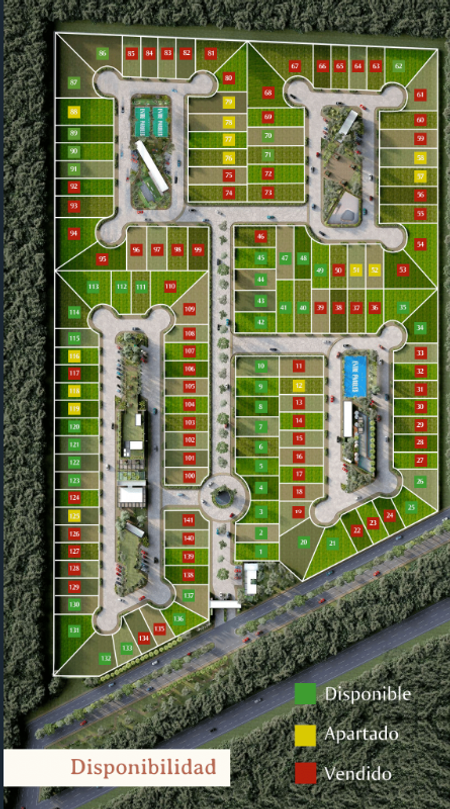Contamos con 141 terrenos residenciales que enmarcan nuestro mayor orgullo: cuatro distintos parques a los que todas las propiedades tienen vista y acceso.