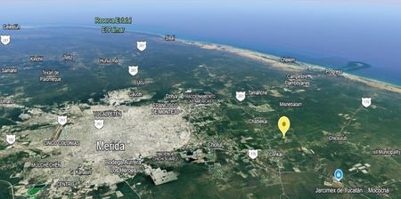 A 10km de Mérida, y a 22 km de la costa esmeralda yucateco de la Playa de Chicxulub Puerto.