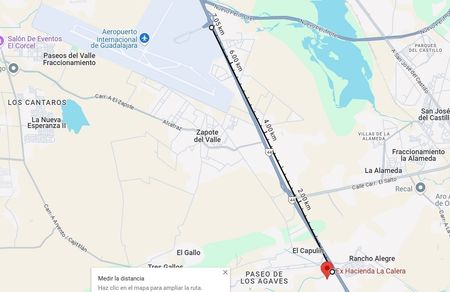 Excelente terreno de 2000m2 ( 25 metros de frente por 80 metros de fondo)en la Ex hacienda la Calera, a 200 metros de la carretera a Chapala con muy buenos accesos, servicios y documentos en regla ( Escritura) a un lado de la ARENA VFG y Jardines de la Calera, a 7 kilómetros del aeropuerto, ideal para bodega