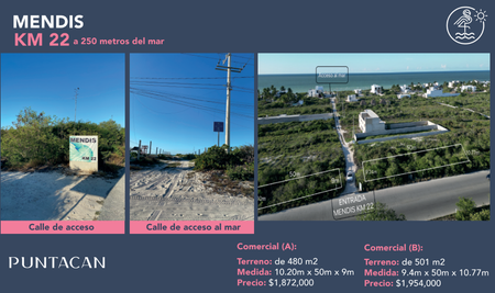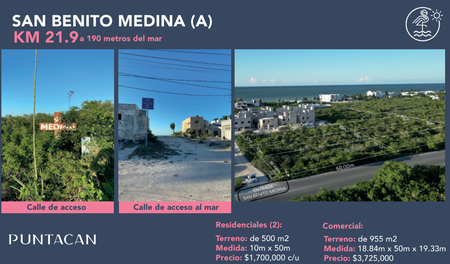 Terrenos comerciales y/o residenciales en excelente ubicación a metros de la playa de San Benito, Yuc. desde 500 m2