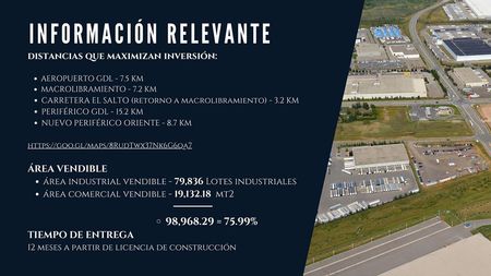 ¿Buscas el lugar perfecto para impulsar tu negocio en el corazón de la actividad industrial de Guadalajara? ¡No busques más! Tenemos para ti una oportunidad única e irrepetible de adquirir terrenos en un parque industrial con una ubicación privilegiada, justo frente a la Arena VFG y en el centro neurálgico del Aeropuerto de Guadalajara.