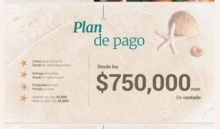 La vida auténtica costera representa lo mejor de Yucatán: un rincón acogedor con playas tranquilas que se mezclan con el brillante mar esmeralda, en un entorno natural espléndido.Con 50 terrenos a escasos pasos de la orilla del mar,