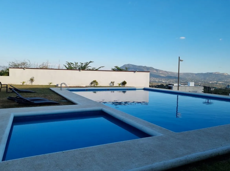 Casa club con alberca, área de eventos y zona de juegos infantiles.