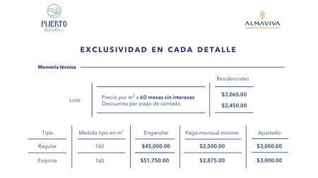 Precio por M2 A 60 MESES SIN INTERESES $3,065.00