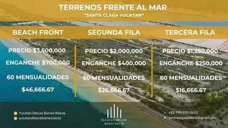 TERRENOS URBANIZADOS FRENTE AL MAR EN PLAYA SANTA CLARA YUCATAN