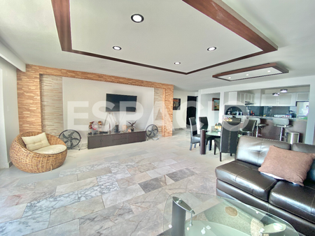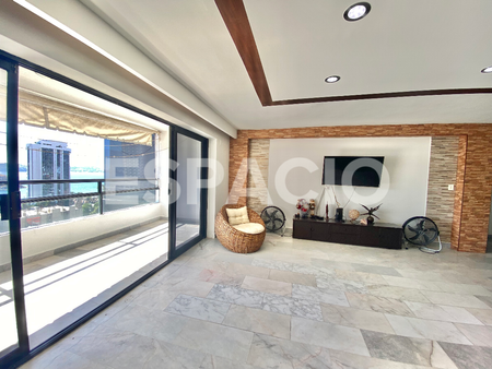 Amplia sala comedor con acceso a Terraza Balcón, con vista a la bahía.