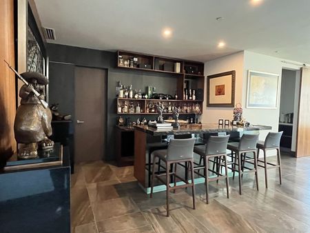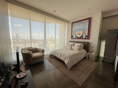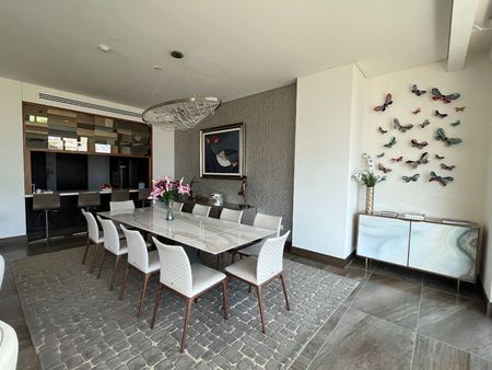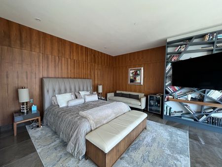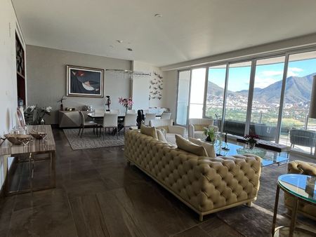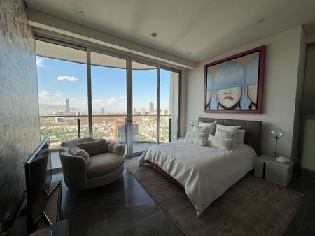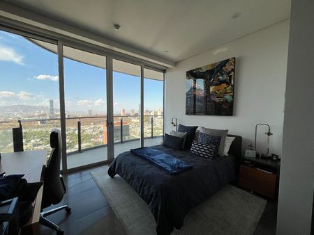 Hermoso departamento con acabados de lujo y amueblado de 412 m3 que cuenta con sala, comedor, bar de granito, cocina equipada, lavanderia, cuarto de servicio (con acceso independiente), amplia estancia familiar, tres recamaras cada uno con su baño y closet. Cuenta con cuatro cajones de estacionamiento, bodega y vistas espectaculares.