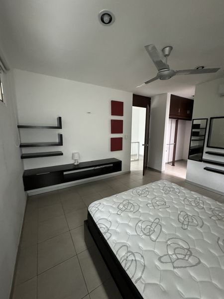 - Habitación Principal con cama queen size, buros, mueble de TV, tocador, Walk in closet y baño completo.