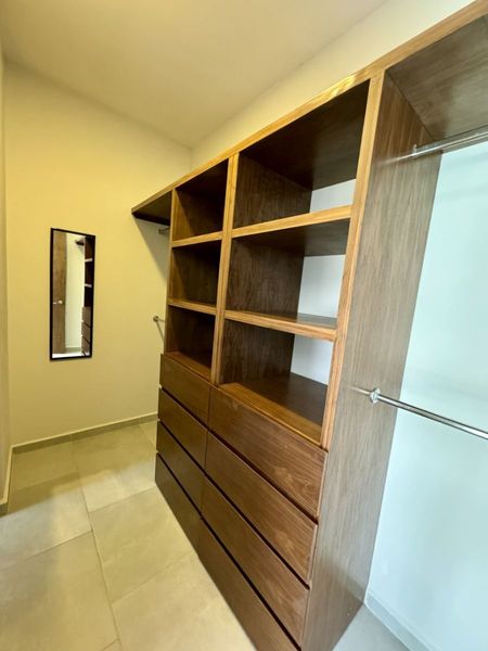 Recámara principal con closet vestidor y baño