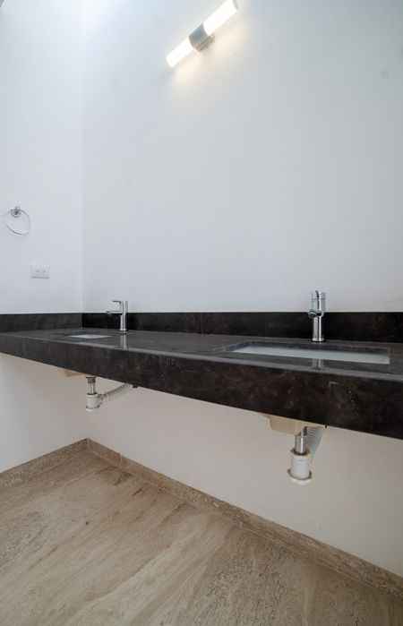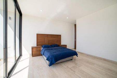 Recámara principal con espacio de closet vestidor, baño completo con doble lavabo y balcón