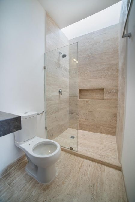 Recámara secundaria con espacio de closet vestidor y baño completo