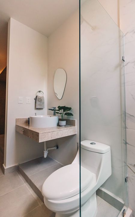 * Medio baño con meseta de Mármol.