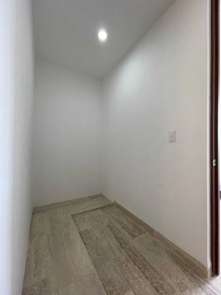 Recámara principal con clóset vestidor, baño completo con doble lavamanos y balcón
