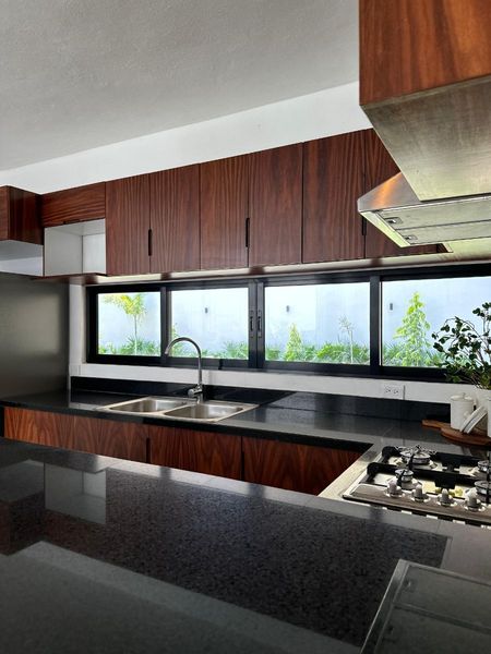 SE ENTREGA CON: Campana, Parrilla de Gas, Tanque Estacionario, Aires Acondicionados en Todas las Áreas, Calentador, Fijo de Cristal Templado y Meseta de Mármol en Baños, Meseta de Granito en Cocina, Carpintería en Cocina, Closets y Baños.