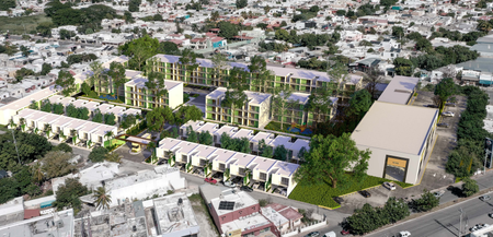 Este desarrollo se divide en una zona privada condominal y otra de libre acceso, que integra tanto espacios comerciales como residenciales. En total, comprende 2.5 hectáreas de terreno.