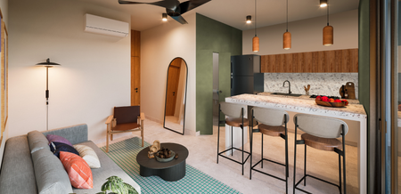 Concepto inmobiliario único de usos mixtos que combina la vida residencial y la practicidad comercial en un solo lugar.