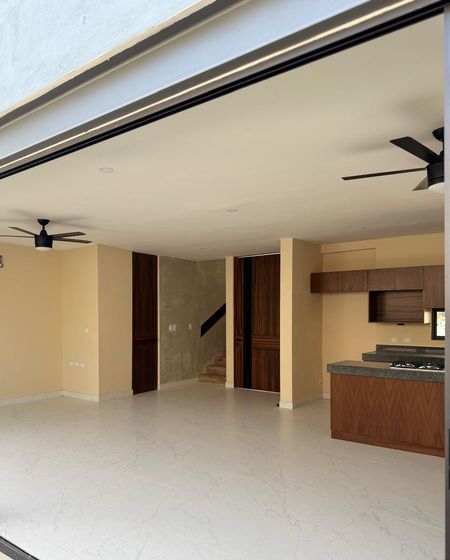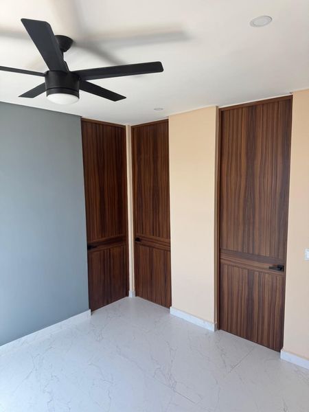 Se entrega con 6 aires acondicionados, ventiladores en todos los espacios, espejos, canceles en los baños, cocina equipada, closets.
