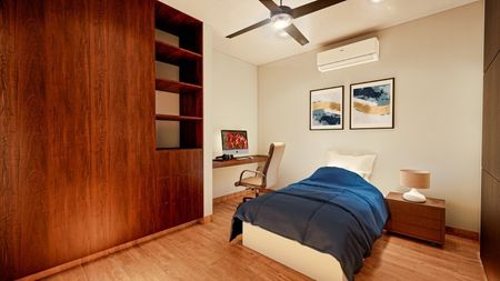 2 recámaras secundarias, cada una con closet, baño y espacio de escritorio
