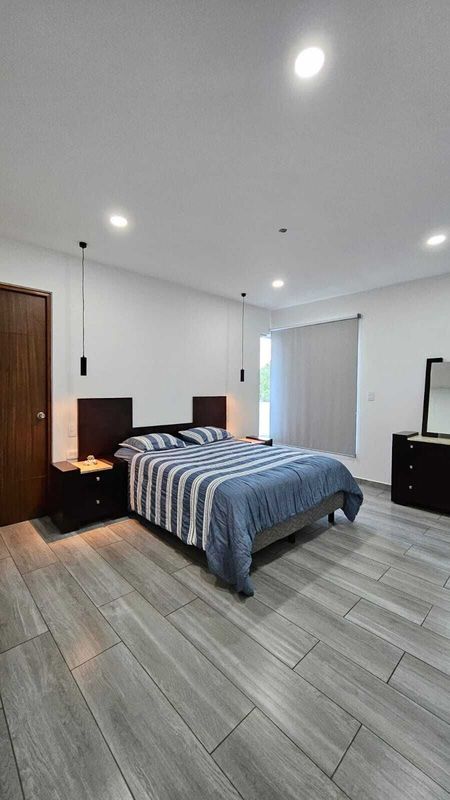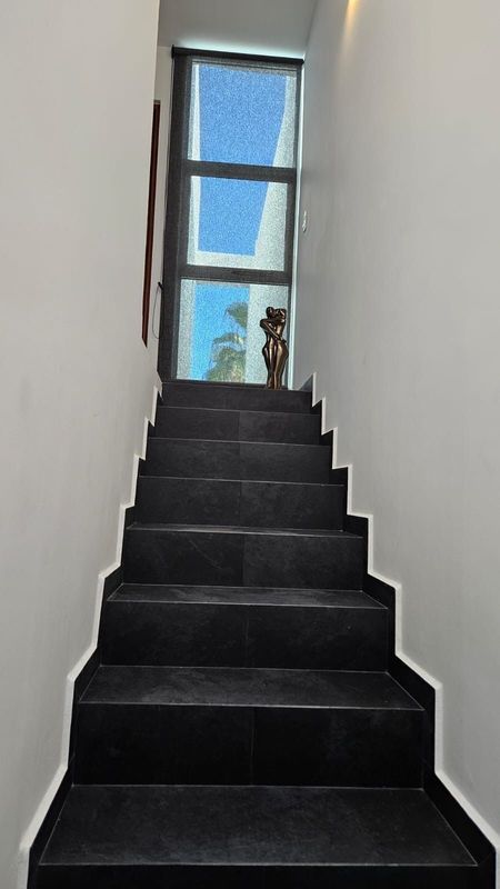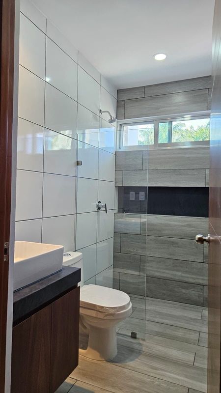 • Baño totalmente vestido en lozas de 90 x 25, y mesetas color negro que incluye muebles bajos.