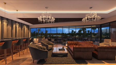 Casa Club con canchas de pádel, tenis, fútbol, albercas, salón de eventos, restaurantes, business Center, gimnasio, baños, sauna y vapor, spinning, y snack bar.