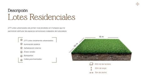277 Lotes urbanizados de primer nivel,divididos en 4 etapas que te permitirán disfrutar de espacios armoniosos rodeados de naturaleza.