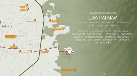 Descubre Residencial Las Palmas, en una zona de crecimiento constante de la ciudad de Merida. Ofrecemos casas residenciales con acabados de alta calidad y multiples modelos a elegir. Vive en un entorno cerca de escuelas, tiendas de conveniencia, farmacias y hospitales; nuestro fraccionamiento constara con areas y espacios que podras disfrutar en compania de tu familia.
