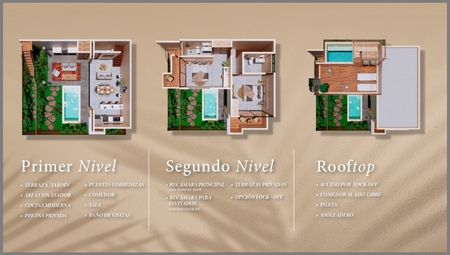Desarrollo integrado por 51 Exclusivas Villas con 2 Recámaras, sistema Lock-off, jardín, alberca, rooftop y jacuzzi dentro de 191.95m2.