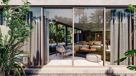 Twolum Villas es un nuevo proyecto residencial con 6 lujosas villas en la creciente colonia Región 8 en Tulum. El complejo está rodeado de selva tropical y ubicado a tan solo 10 minutos del centro bohemio y chic de Tulum, además de a dos cuadras de la nueva carretera de la playa que lleva directamente a la zona hotelera y a las hermosas playas de arena blanca. Los amantes de la naturaleza adorarán la cercanía a las ruinas de Tulum, Coba y docenas de cenotes asombrosos que se encuentran dispersos por la selva maya.