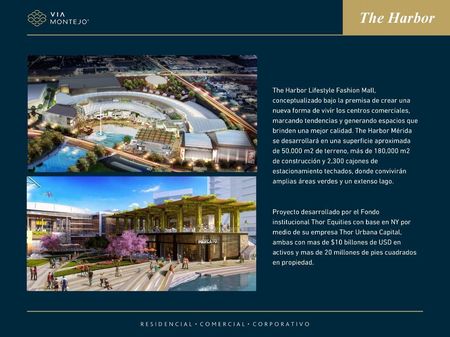 Podrás encontrar todo lo que necesitas sin salir de la zona: innovadores edificios residenciales, torres corporativas, centro médico, un parque central y The Harbor, el lifestyle fashion mall más exclusivo de Mérida.