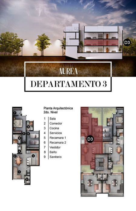Específicamente la unidad No.3 de 89.00 m2 habitables, cuenta con 2 Recamaras (1 Recamara Principal con closet vestidor, closet exterior, Baño completo con mueble granito, ventilador y aire acondicionado invertir. 1 Recamara Secundaria con closet exterior con mueble granito, ventilador y aire acondicionado invertir) Carpintería de madera tropical, Sala – Comedor con aire acondicionado invertir, Medio Baño, Cocina equipada, Área de servicio con calentador eléctrico, Acabados de lujo, Roof Garden, Estacionamiento subterráneo, te ofrecemos escrituras inmediata y la posibilidad de adquirir crédito hipotecario
