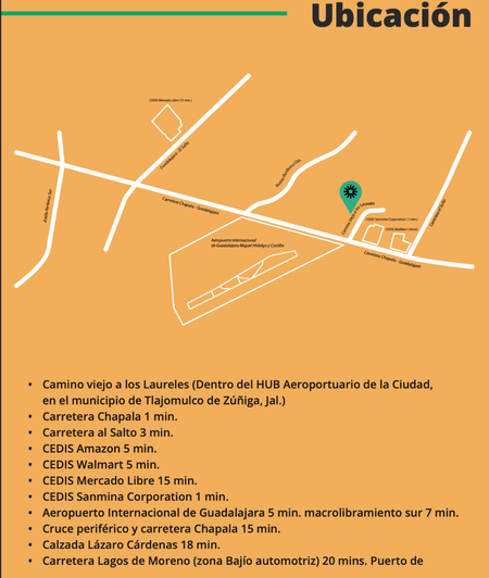 Disfruta de una ubicación inmejorable, a solo 1 minuto de la carretera Chapala y 3 minutos de la carretera El Salto. No solo ofrece un espacio urbanizado sino todos los servicios necesarios: red eléctrica, videovigilancia, caseta de vigilancia, business center, estacionamiento, comedor, agua potable entre otros.