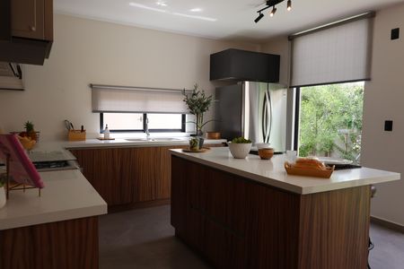 Cocina integral con barra desayunadora.
