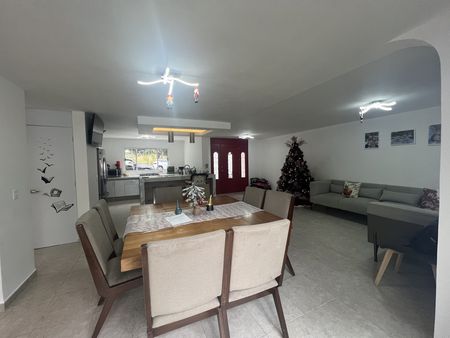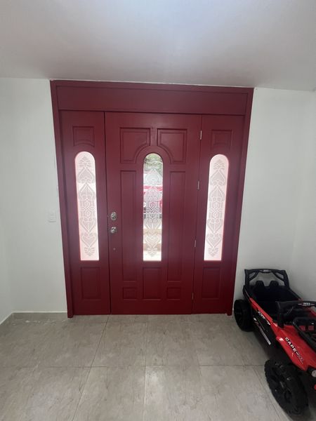 Esta bonita casa recién remodelada, cuenta con una fachada muy agradable con reja de forja jardines decorativos con una explanada para estacionar 3 autos cómodamente. Marquesina peatonal, portal de acceso con puerta entablerada maciza, de diseño europeo contemporáneo.