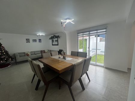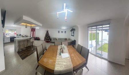 Vestíbulo de acceso, Espaciosa estancia de agradable ambiente, con piso de porcelanato reflejando amplitud y buen gusto, Comedor invita a compartir la buena mesa. Medio baño de visitas, Puerta corrediza de cristal se abre al patio y jardín.